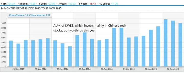 KraneSharesCSI中国互联网ETF管理资产规模大幅增长